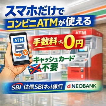 住信SBIネット銀行の「スマホATM」を使えば、キャッシュカードなしでコンビニATMから入金・出金ができます。セブン銀行・ローソン銀行対応、手数料0円。初心者向けに設定方法から使い方、注意点まで分かりやすく解説します。
