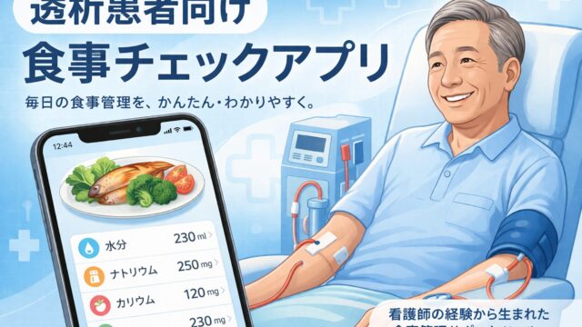 透析看護師として22年間の経験をもとに、透析患者向けの食事管理アプリを開発しました。塩分・カリウム・リン・水分を簡単にチェックできるサポートツールをご紹介します。