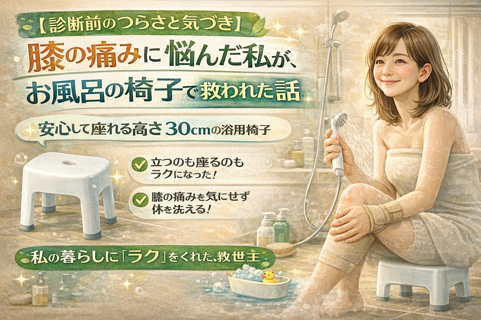 【診断前のつらさと気づき】膝の痛みに悩んだ私が、お風呂の椅子で救われた話