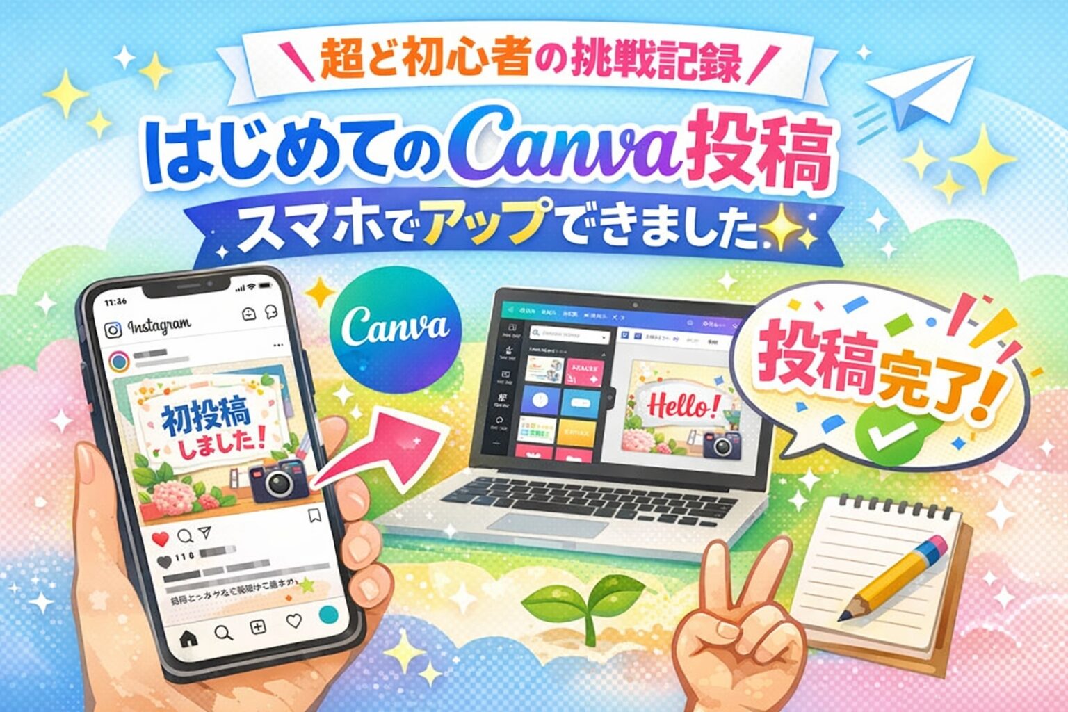 \超ど初心者の挑戦記録/はじめてのCanva投稿、スマホでアップできました✨