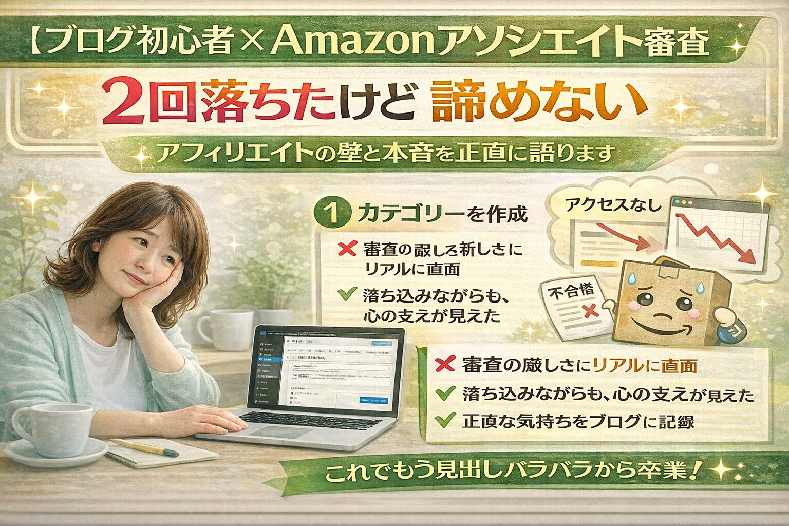 【ブログ初心者×Amazonアソシエイト審査】2回落ちたけど諦めない|アフィリエイトの壁と本音を正直に語ります