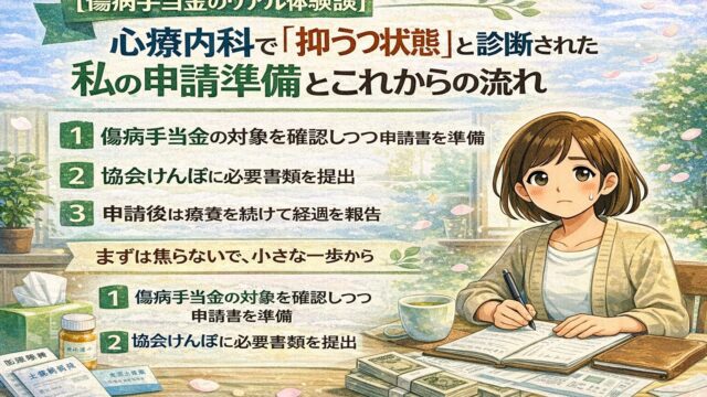 傷病手当金の申請後、支給が決定するまでのリアルな流れを記録。審査期間、通知の届き方、支給額の確認ポイント、再申請のコツまで、看護師の体験としてやさしく解説します。
