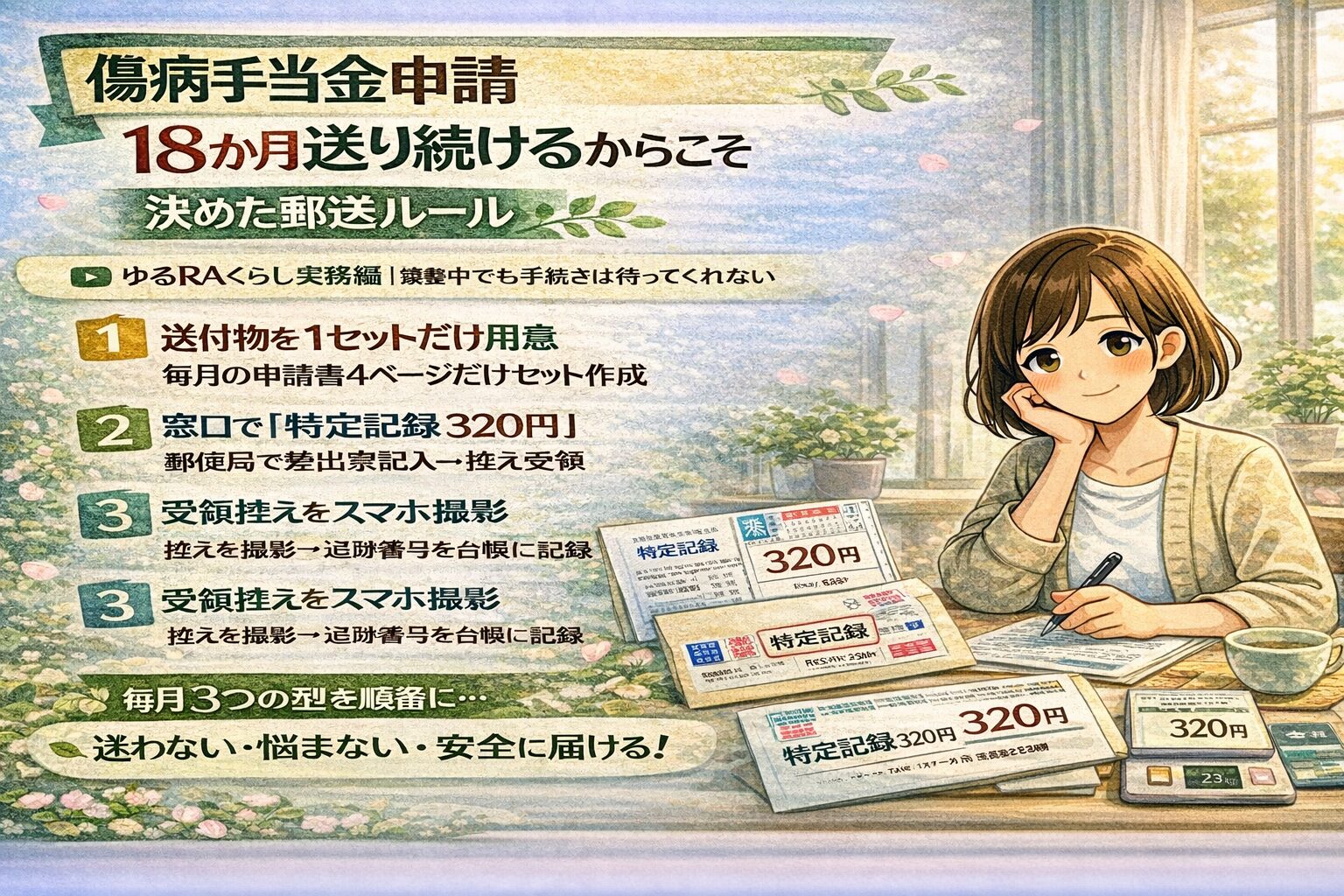 【傷病手当金申請】18か月送り続けるからこそ決めた郵送ルール|特定記録320円で毎月を安全に回す私の実務マニュアル