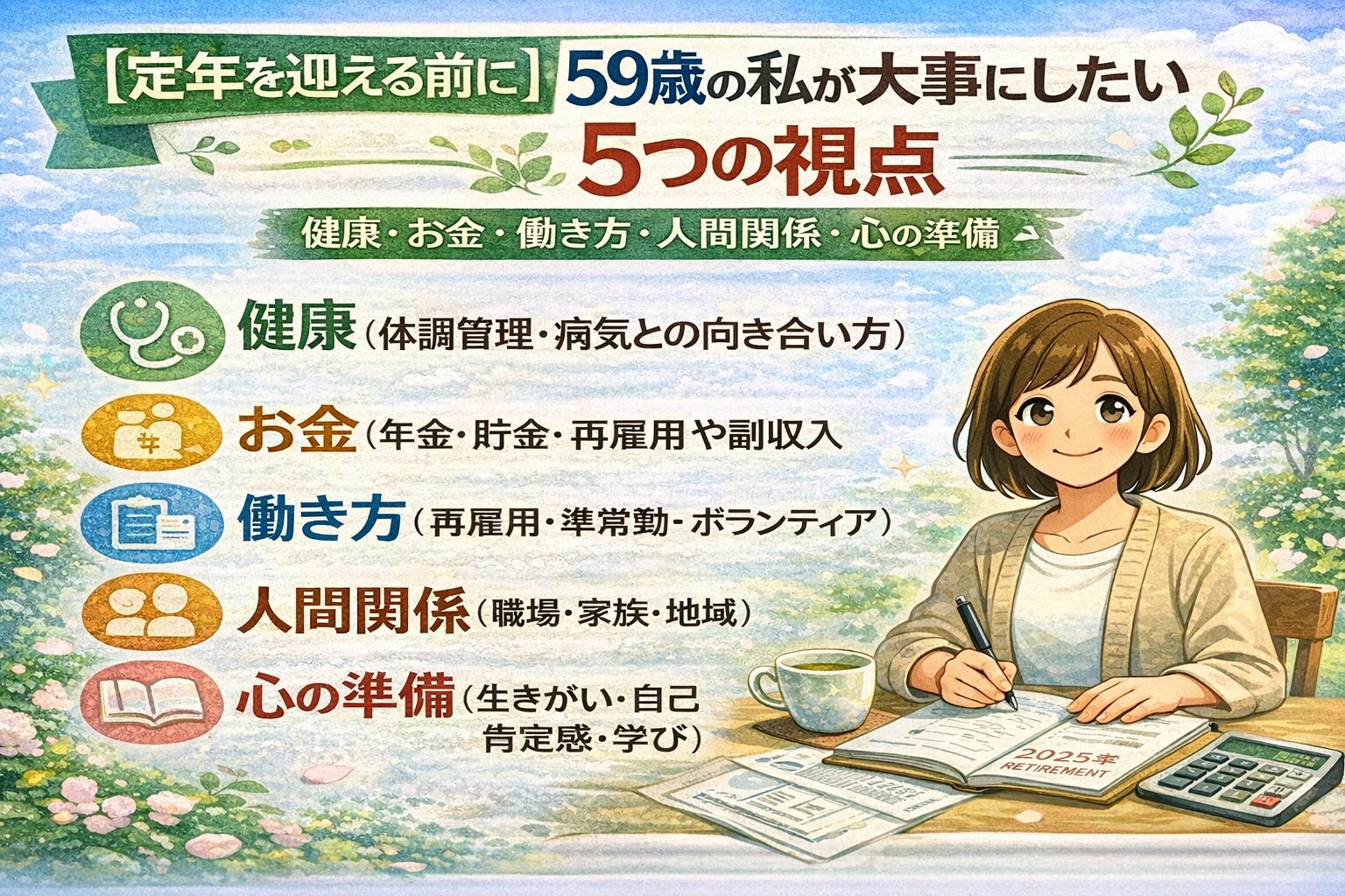 【定年を迎える前に】59歳の私が大事にしたい5つの視点|健康・お金・働き方・人間関係・心の準備