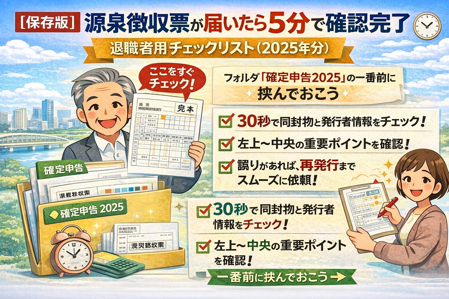 【保存版】源泉徴収票が届いたら5分で確認完了|退職者用チェックリスト(2025年分)