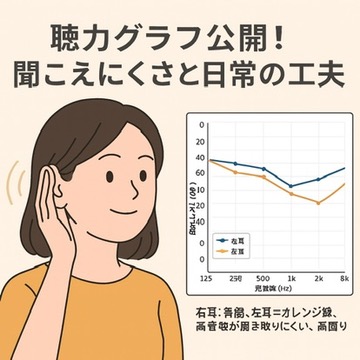 働き方とわたし hearing-audiogram-daily-life 先日の聴力検査をもとに自作した聴力グラフを公開しました。高音域が聞こえにくい私の日常や工夫を紹介。家族の支えやユーモアを交えながら、聞こえ方との付き合い方を綴ります。 2025.08.16 働き方とわたし