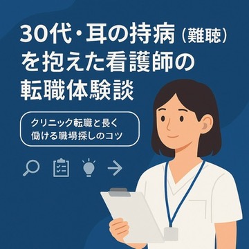 働き方とわたし nurse-career-change-30s-hearing-loss 30代で耳の持病(難聴)を抱える看護師が、透析室勤務からクリニック転職へ踏み出した体験談。お試し勤務の活用法や転職サービスを使った長く働ける職場探しのコツを紹介します。 2025.08.16 働き方とわたし