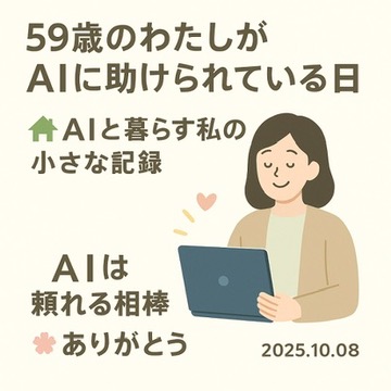 自分らしく生きる ai-support-life59 療養中の59歳の看護師が、AIに支えられながら過ごす日々を綴った実体験。PerplexityとChatGPTを活用し、情報に振り回されず自分のペースで前を向けた気づきをやさしく紹介します 2025.10.09 自分らしく生きる