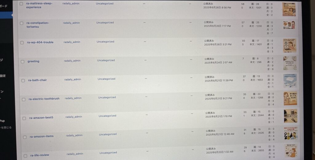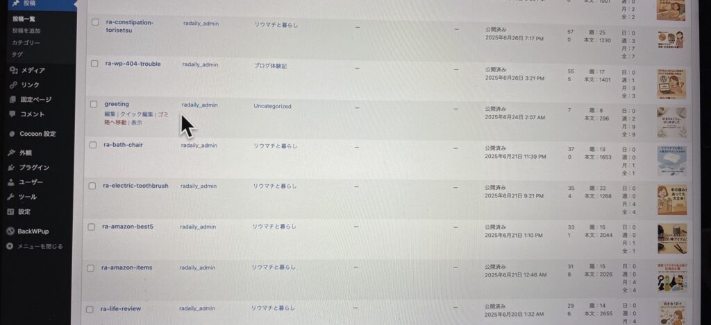 👇 カテゴリーを設定したあとの投稿一覧(現在の画面)