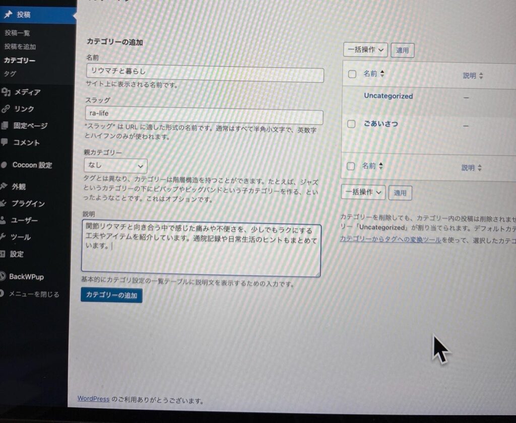 ・WordPressで新しいカテゴリーを作る手順