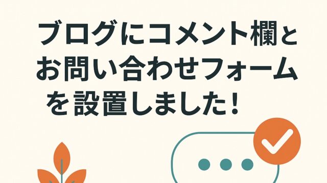 ブログ体験記 comment-contact-added WordPressブログにコメント欄とお問い合わせフォームを設置しました!初心者でも簡単にできる設定方法と、設置のメリット・気づきを紹介します。 2025.08.04 ブログ体験記