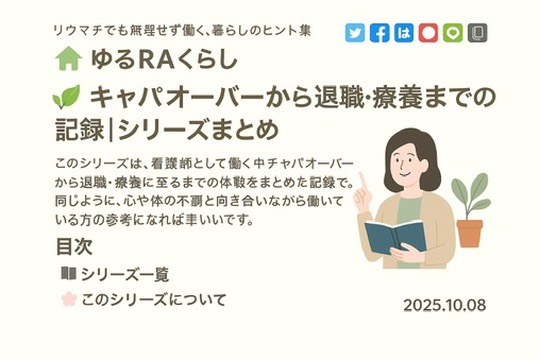 このシリーズは、看護師として働く中でキャパオーバーから退職・療養に至るまでの体験をまとめた記録です。